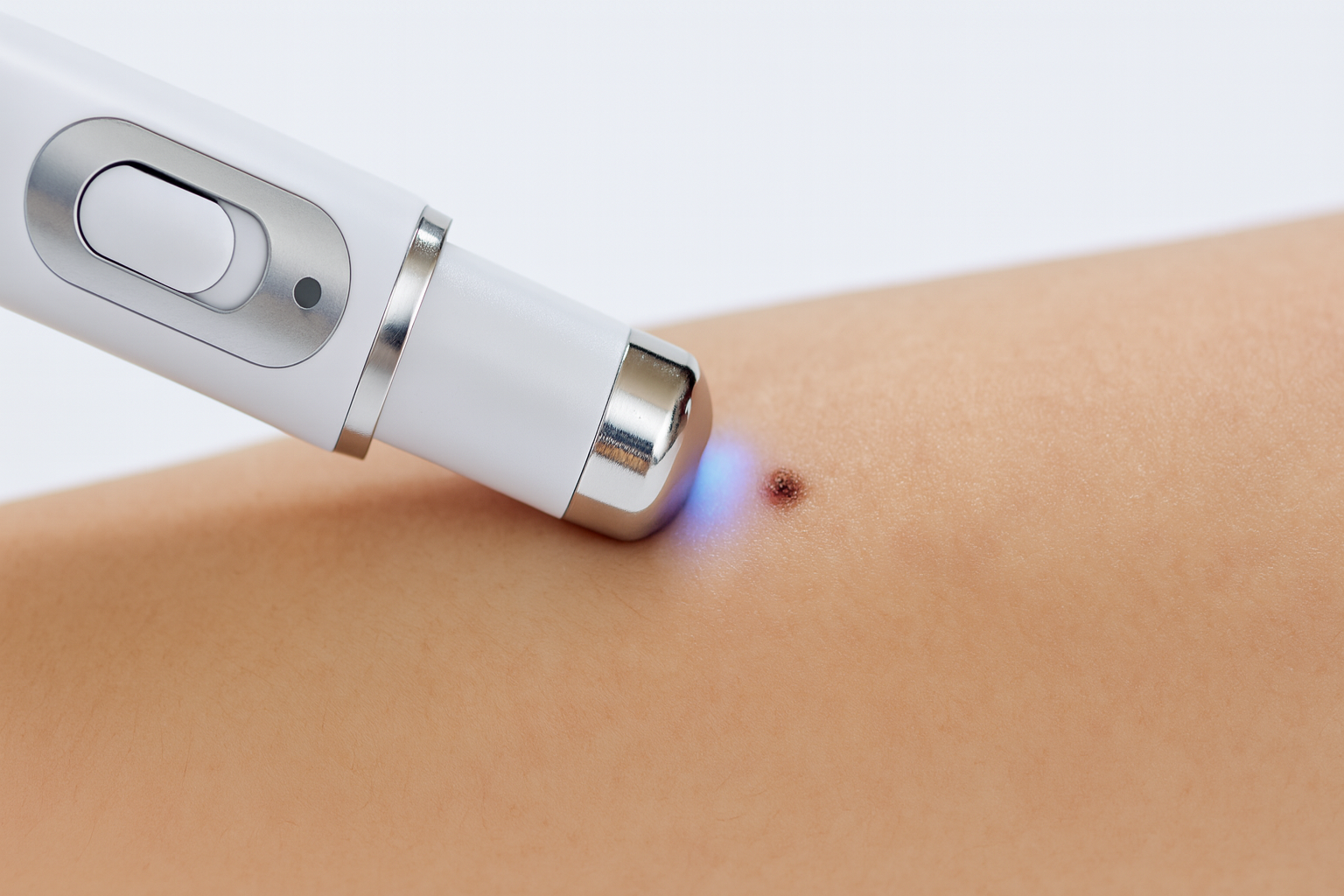 Gently place the device on the mole, wart, or skin tag. The CO₂ laser energy penetrates and begins breaking down unwanted tissue.